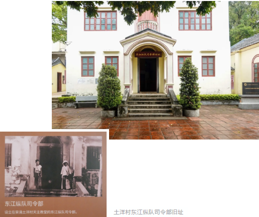 土洋村东江纵队司令部旧址隐匿在深山中,是东江纵队的指挥中心。曾经在东江纵队指挥下,两百余名中大学子分成数十队,面对敌人层层设卡与自然险阻,分批绕道、装扮成商贩或逃难者,在党组织的指引和帮助下先后抵达根据地。