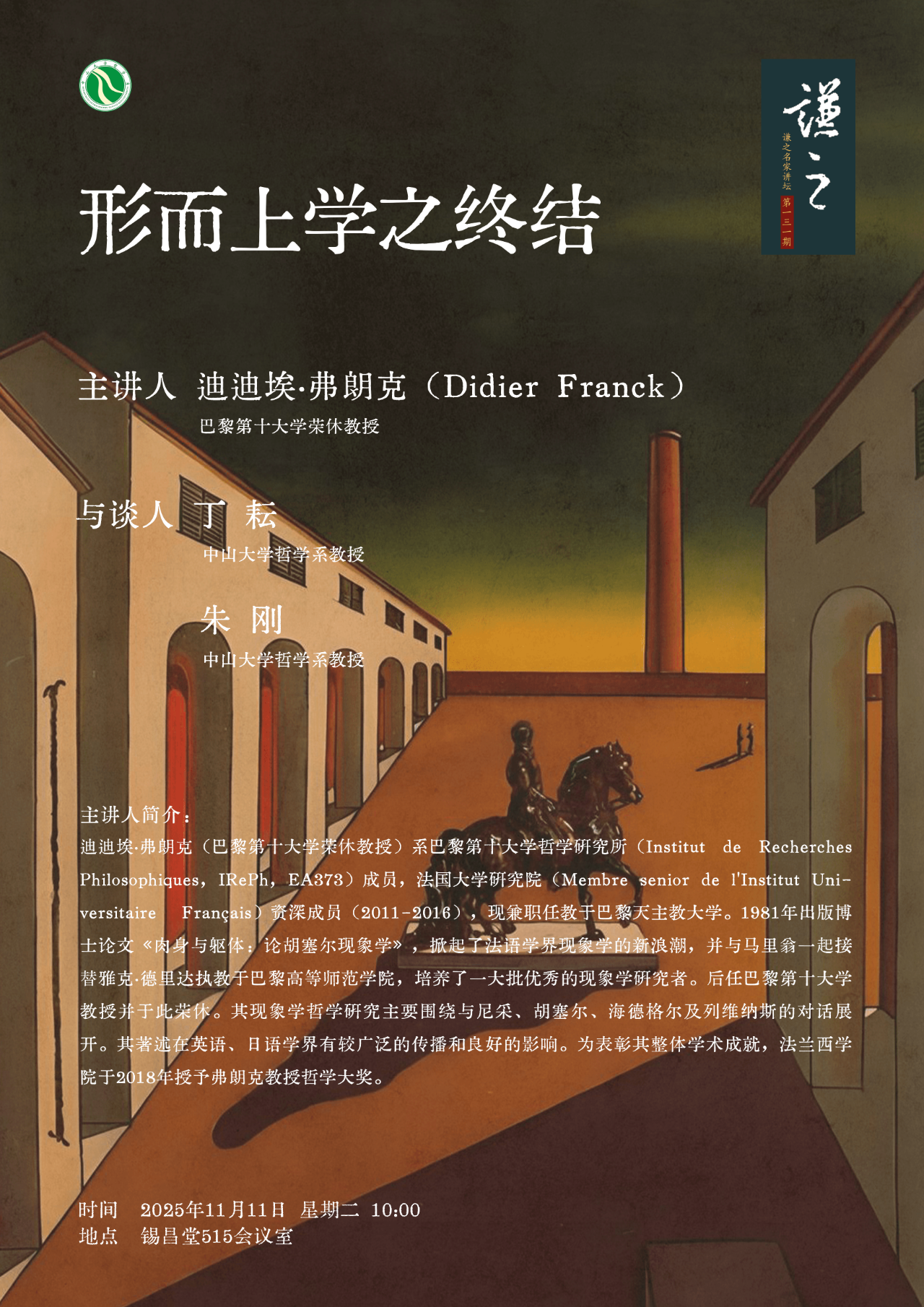 谦之名家讲坛预告|Didier Franck:形而上学之终结