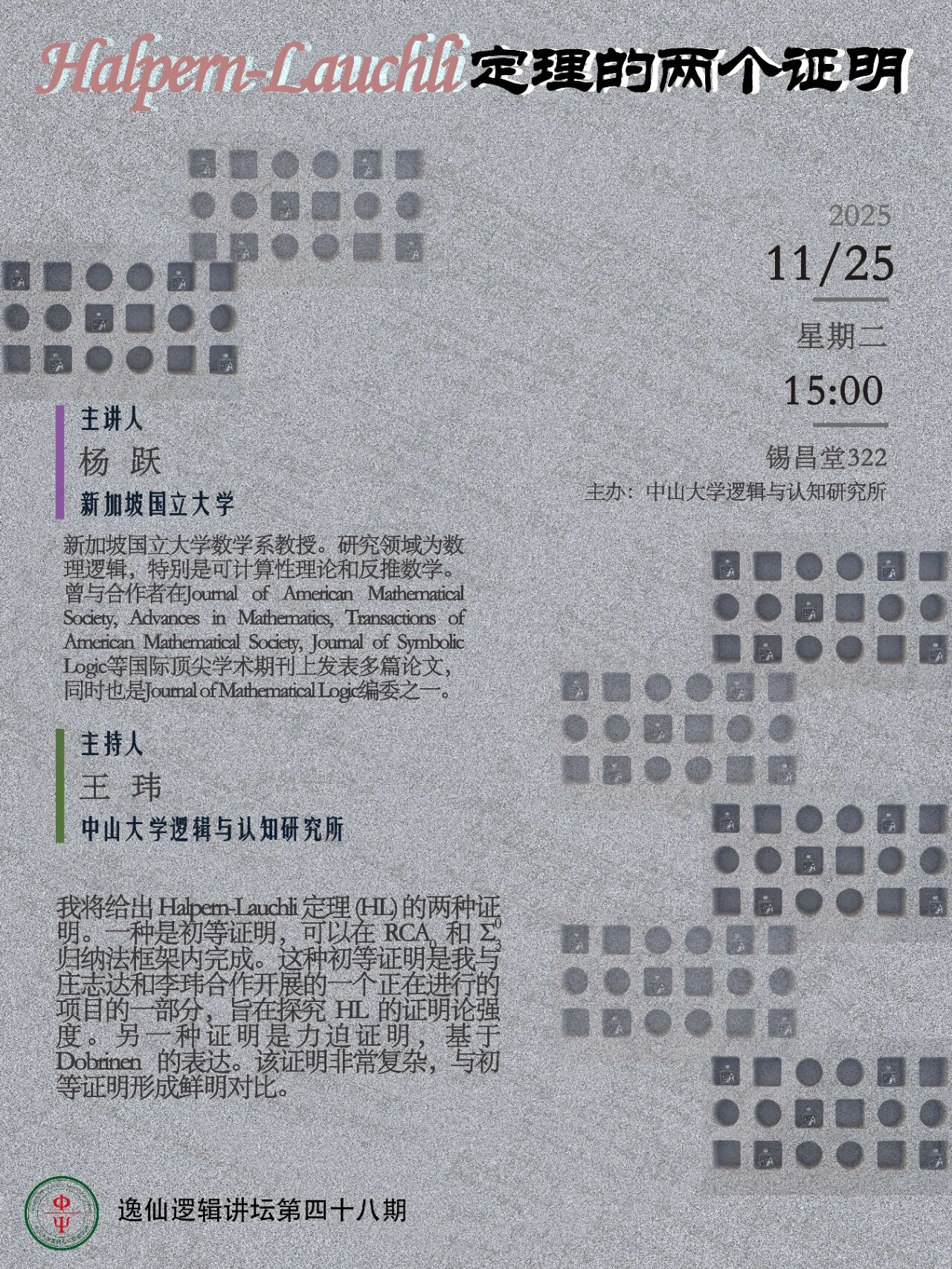 逸仙逻辑讲坛第四十八期|杨跃:Halpern-Lauchli 定理的两个证明
