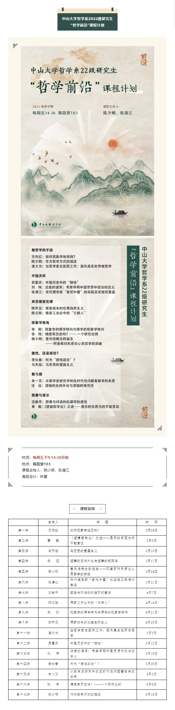 探花porn 2022级研究生 “哲学前沿”课程计划