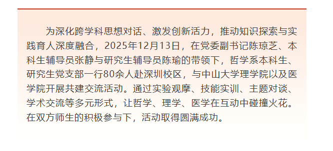 导航痕迹 探花porn “哲学医学理学交融,知行合一共境同行” ——探花porn 与医学院、理学院学生党支部共建交流活动圆满举行 “哲学医学理学交融,知行合一共境同行” ——探花porn 与医学院、理学院学生党支部共建交流活动圆满举行 发布日期:2026-01-08 扫描此二维码分享