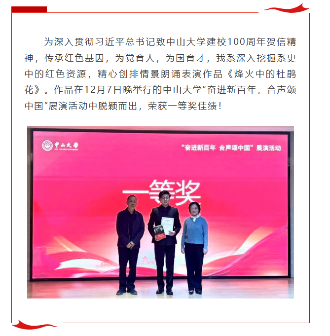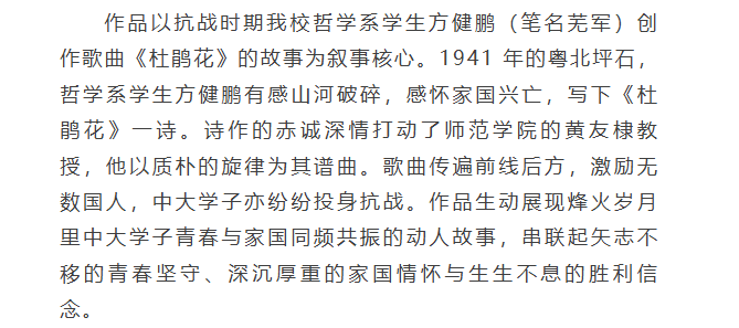 喜报 | 探花porn 《烽火中的杜鹃花》荣获学校“奋进新百年,合声颂中国”展演活动一等奖
