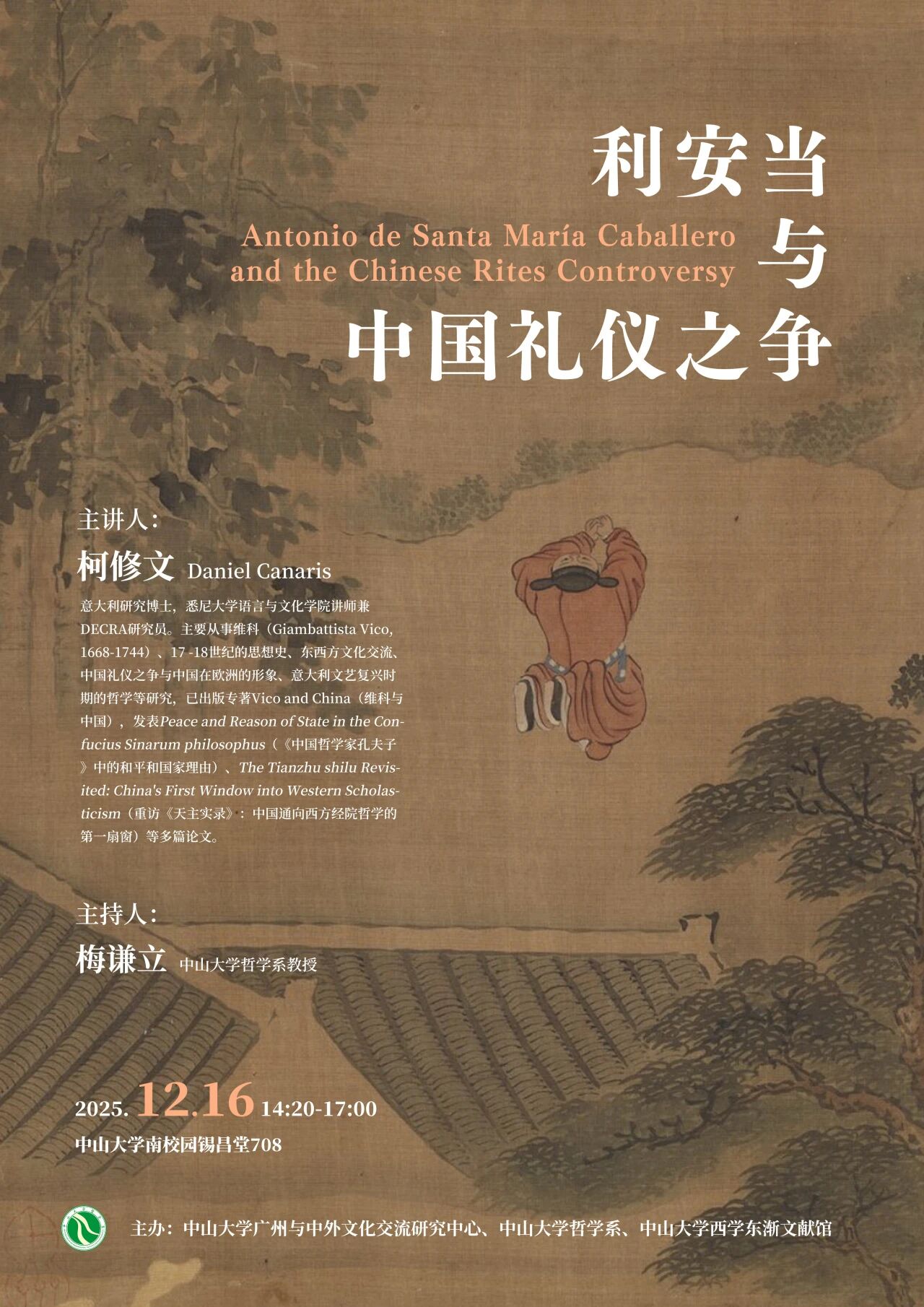 本次讲座将介绍即将出版的一部批判性校译本,该书收录了西班牙方济各会传教士利安当(Antonio de Santa María Caballero,1602-1669)于1661年撰写的《关于前些年在罗马所提中国人祭祖仪礼问题的宣誓证言》(拉丁文原题:Declaratio sub iuramento super ea quae Romae Annis praeteritis Proposita fuere iuxta cultum Ritusque Sinarum erga suos e vita discessos Maiores)。利安当作为明代中国方济各会传教事业的奠基者,在”中国礼仪之争”中因其坚定反对耶稣会对儒家祭祀礼仪的包容立场,被视为托钵修会教条主义的代表人物。